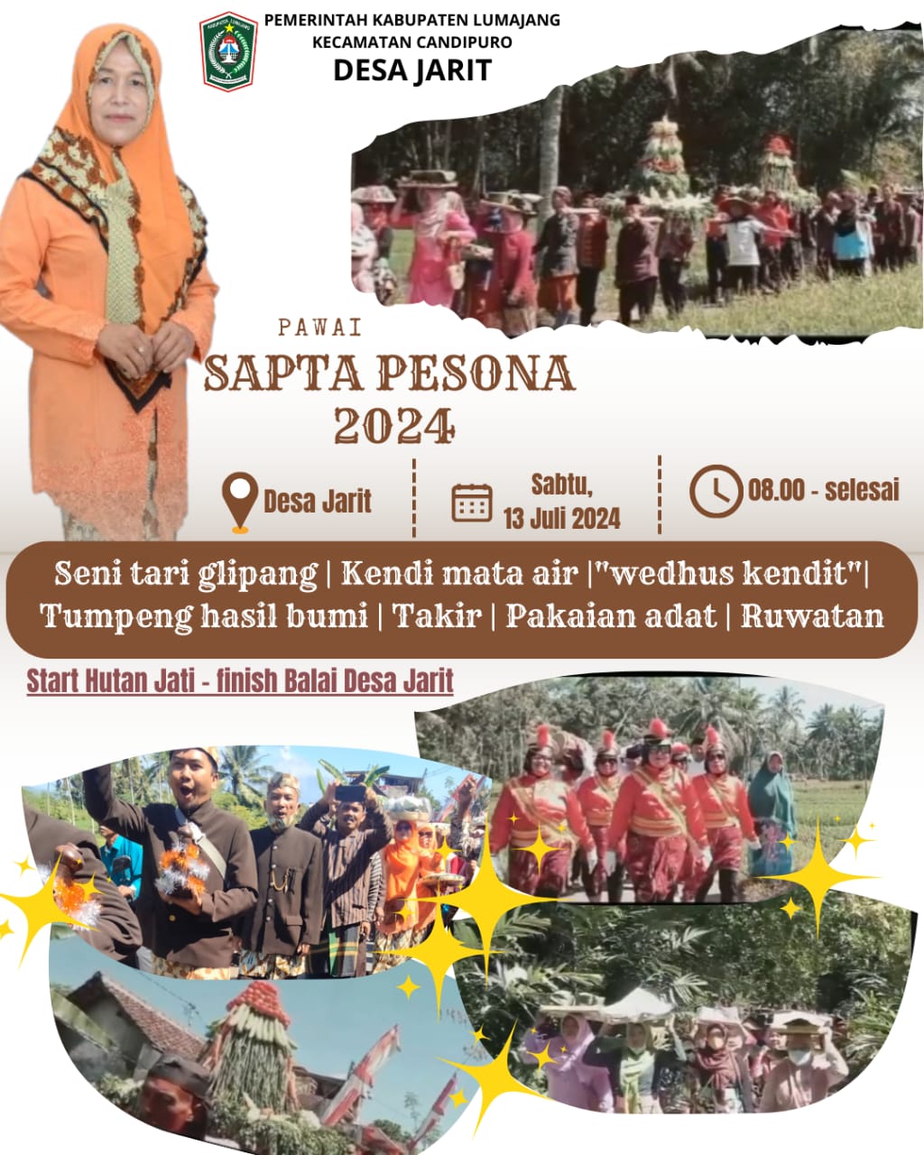 Pawai “Sapta Pesona” adalah salah satu agenda yang dilaksanakan pada selamatan desa tahun 2024. Nama “Sapta Pesona” diambil dari jumlah adat kebudayaan yang ...